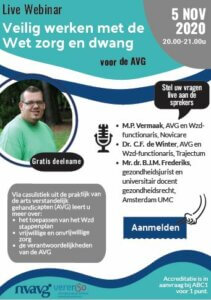 Het webinar start met een korte update van de komende aanpassingen van de Wet zorg en dwang vanuit de spoedreparatiewetgeving en een introductie over de taken en verantwoordelijkheden van de AVG.